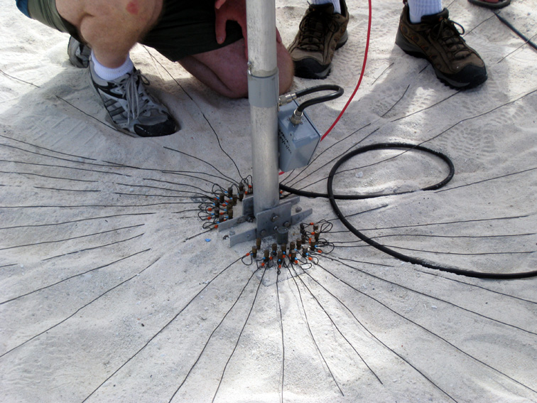Franz working on the SVDAs. All antennas were required to be only verticals and all masts and guys were marked with flying banners to protect the birds.